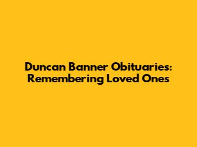 The Duncan Banner obituaries serve as a vital community resource, providing a space to honor and remember the lives of those who have passed away. These obituaries are more than just announcements; they are lasting tributes that capture the essence of a person's life, their accomplishments, and the impact they had on their families and friends. For those grieving the loss of a loved one, the Duncan Banner offers a way to share their memories and celebrate their life with the wider community.