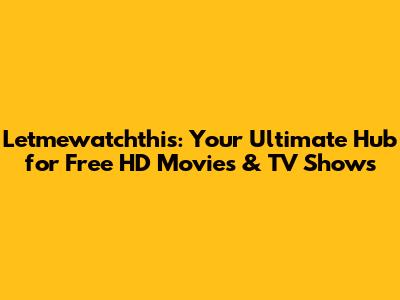 Hey everyone! Ever find yourself scrolling endlessly, trying to find that perfect movie or TV show to binge-watch, only to hit a paywall? Yeah, we've all been there, guys. It’s super frustrating, right? Well, get ready to say goodbye to those streaming woes because Letmewatchthis is here to revolutionize your entertainment experience. We're talking about a place where you can dive into a massive library of free TV shows and movies in HD, all without breaking the bank or dealing with annoying sign-ups. This isn't just another streaming site; it's your new go-to destination for unlimited, high-quality entertainment. Whether you're a die-hard cinephile craving the latest blockbusters, a series fanatic looking for your next obsession, or just someone who wants to unwind with a classic flick, Letmewatchthis has got your back. We've curated an incredible collection that spans across genres, eras, and continents, ensuring there's always something new and exciting waiting for you. Forget juggling multiple subscriptions and paying exorbitant fees. Our mission is simple: to make premium entertainment accessible to everyone. So, grab your popcorn, get comfy, and let's explore the amazing world of free, high-definition streaming that Letmewatchthis offers. Get ready to discover hidden gems, revisit old favorites, and stay on top of the newest releases, all in stunning HD quality. It’s time to upgrade your movie nights and TV marathons, and the best part? It’s all completely free!