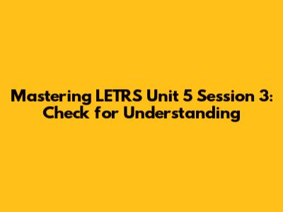 Mastering LETRS Unit 5 Session 3: Check For Understanding