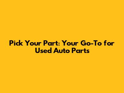Hey guys! Ever found yourself in a situation where your car needs a fix, but the cost of new parts is just through the roof? Or maybe you're an auto enthusiast who loves tinkering with cars and needs a reliable source for affordable parts? Well, let me introduce you to Pick Your Part, a fantastic resource that can save you a ton of money and hassle when it comes to sourcing used auto parts.