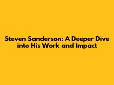Steven Sanderson: A Deeper Dive into His Work and Impact