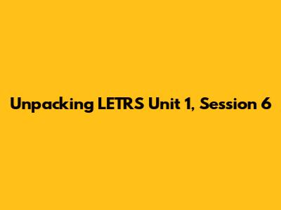 Unpacking LETRS Unit 1, Session 6