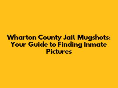 Hey guys, ever found yourself needing to look up someone who's currently in the Wharton County Jail? Maybe you're trying to find a friend, a family member, or perhaps you're just curious about recent arrests. Well, you're in the right place! We're diving deep into how you can access Wharton County Jail inmate pictures and mugshots. It's super important to know that this information is usually public record, which is awesome because it means you can often find what you're looking for without too much hassle. Accessing these records helps keep the community informed and can be a crucial step for various reasons, whether it's for personal peace of mind or for legal inquiries. We'll walk you through the best ways to go about this, highlighting the official channels and any potential third-party resources that might be helpful. Remember, while the goal is to provide information, it's also essential to use this data responsibly and ethically. So, grab a coffee, and let's get started on uncovering how to find those Wharton County Jail inmate pictures! — MKVCinemas: Your Guide To The Latest Blockbusters